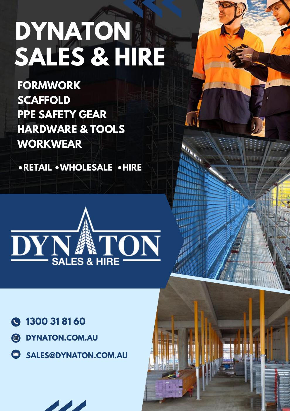 Dynaton Sales & Hire (ABN: 28 141 123 739) is a 100% Australian owned company based in Brisbane. Choose Dynaton for quality Formwork and Scaffold products. We sell to the public at wholesale rates.